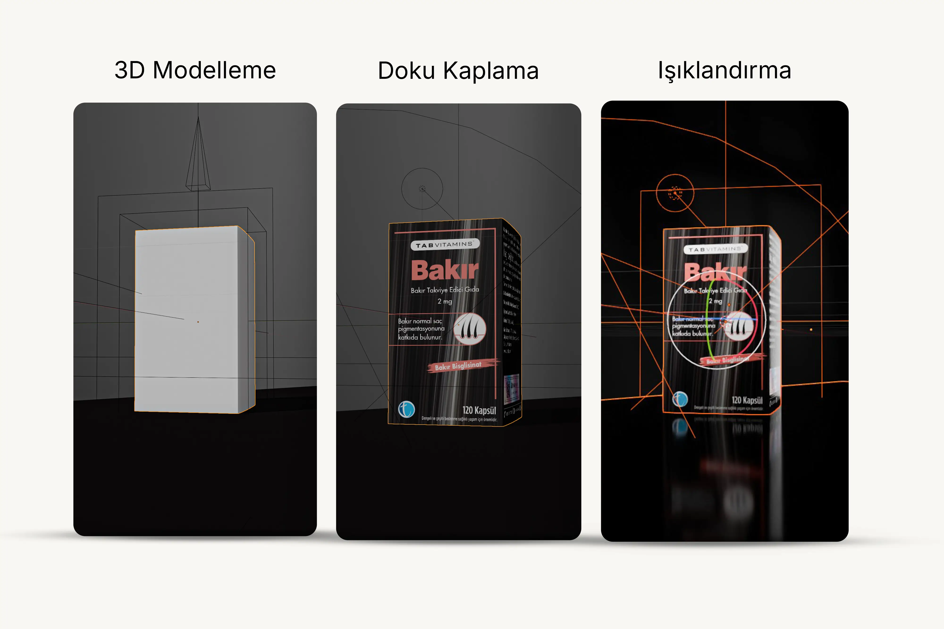 Bu çalışma, TAB Vitamins Bakır'ın spesifik faydasını başarılı bir kurguyla öne çıkarır. Teknik detaylar ve bilimsel iddia, akıcı dijital kurguyla aktarılmıştır. "Zamanında Müdahale" sloganı, proaktif sağlık adımına teşvik eder. Sonuç olarak bu çalışma, sade 3D tasarımla dahi, güçlü bir bilimsel iddiayı akılda kalıcı ve estetik bir dille sunabileceğimizin kanıtıdır.