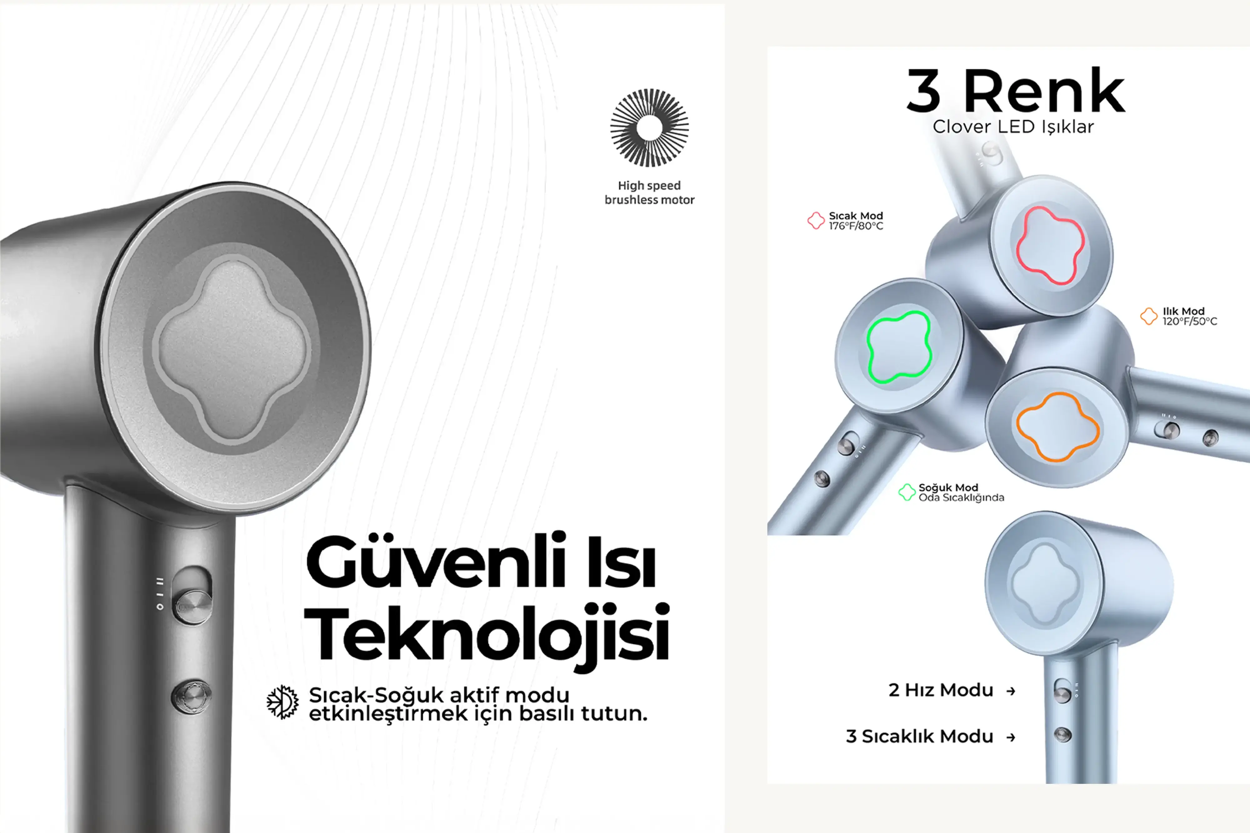 Ortaya çıkan çalışma, Dersar Dryer’ın teknolojik özelliklerini öne çıkarırken markaya modern, güçlü ve tutarlı bir kimlik kazandırdı. Görseller, grafik dil ve marka bütünlüğü sayesinde ürün; dijital platformlardan basılı materyallere kadar her mecrada dikkat çekici, profesyonel ve etkili bir şekilde temsil edildi.